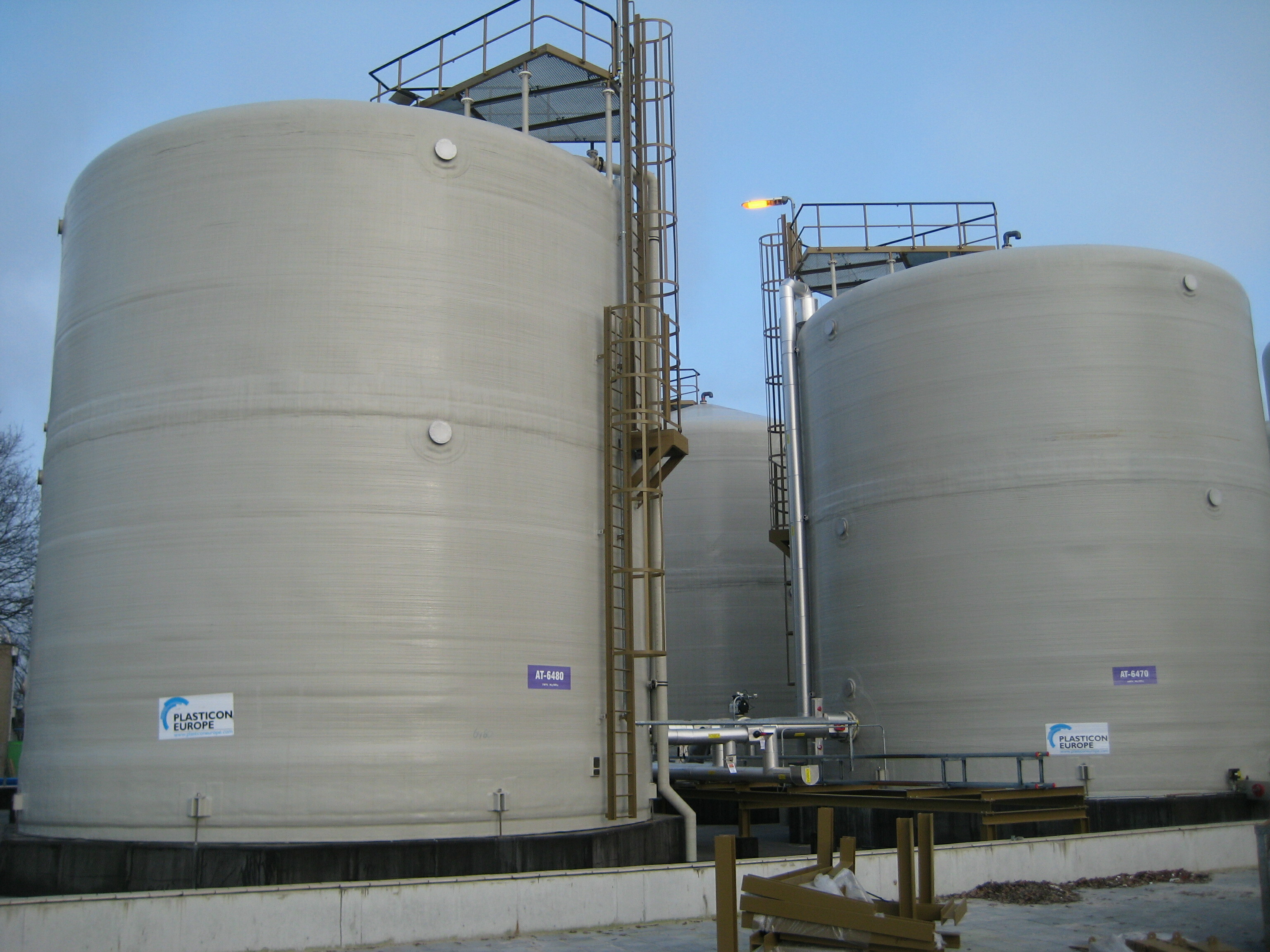 Los tanques y silos de almacenamiento de PRFV y doble laminado de Plasticon Projects pueden equiparse con numerosos accesorios, como válvulas, indicadores de nivel, células de carga, filtros de polvo, sistemas de aislamiento y trazado térmico, anillos de refuerzo/vacío, soportes de acero o PRFV, plataformas o capas antideslizantes, depuradores de ventilación, escaleras, barandillas, pasarelas y bombas.