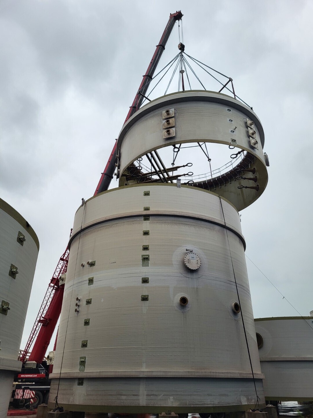 Para adaptarse a la magnitud del proyecto, Plasticon Projects utilizó máquinas móviles de enrollado de última generación, lo que permitió la construcción del depurador directamente en el sitio sin interrupciones. Esta técnica no solo facilitó la fabricación de una estructura de tal tamaño, sino que también mejoró la precisión y la calidad general del producto final. El uso de PRFV garantiza una durabilidad a largo plazo, resistencia a la corrosión y bajos requisitos de mantenimiento, convirtiéndolo en la opción ideal para un entorno industrial como la fábrica de pellets de Tata Steel.